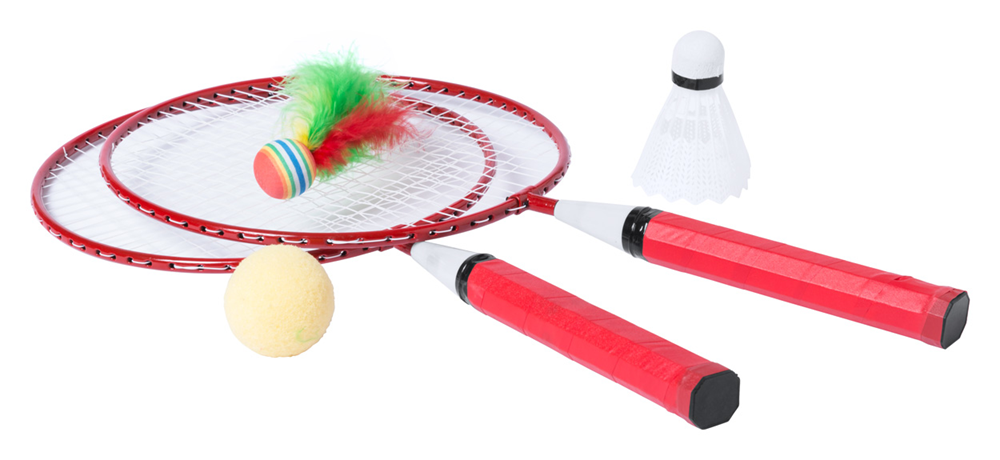 Badmintonset für 2 Spieler: 2 Schläger und 3 Bälle. Material: Metall und Holz.