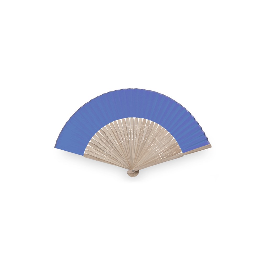 Handfächer aus gestanzten Holzstäbchen und Polyestergewebe in verschiedenen Farben. Präsentiert... mehr