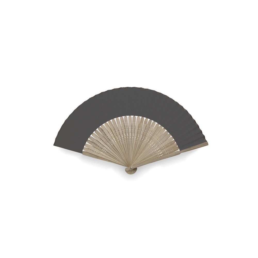 Handfächer aus gestanzten Holzstäbchen und Polyestergewebe in verschiedenen Farben. Präsentiert... mehr