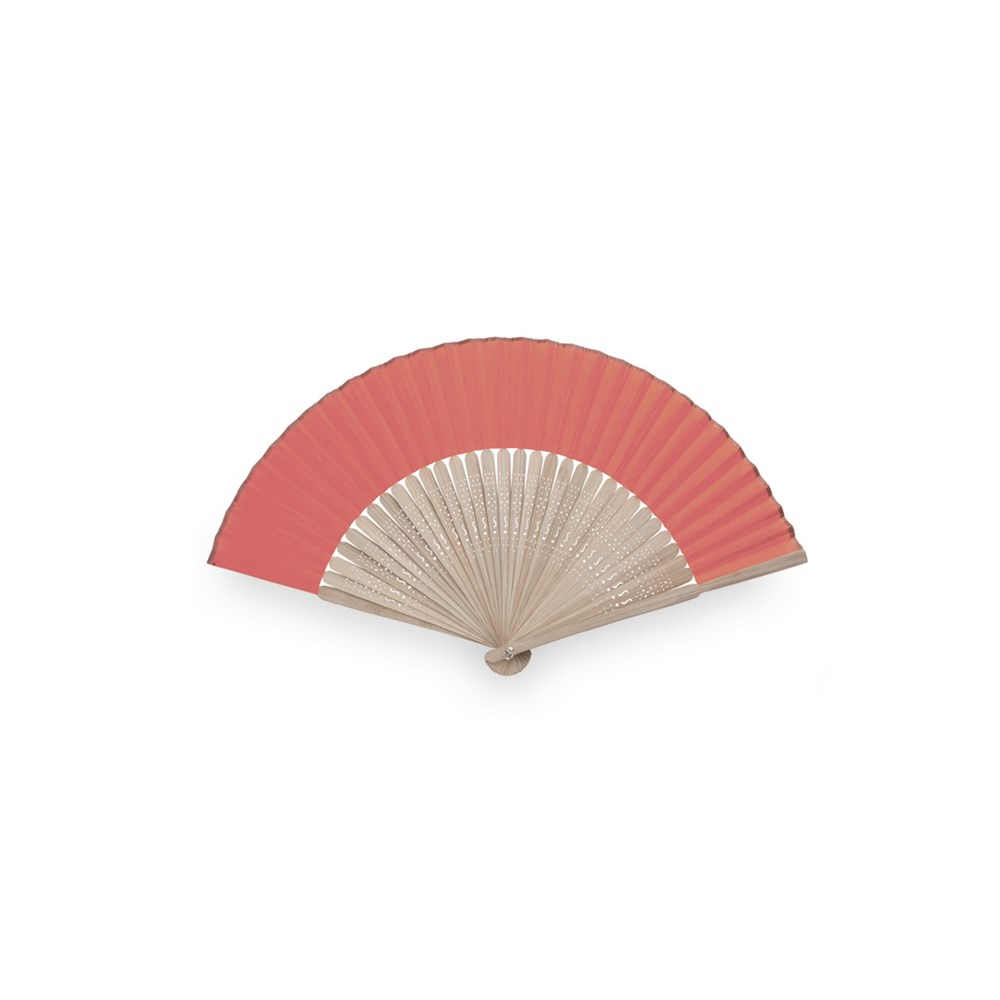 Handfächer aus gestanzten Holzstäbchen und Polyestergewebe in verschiedenen Farben. Präsentiert... mehr