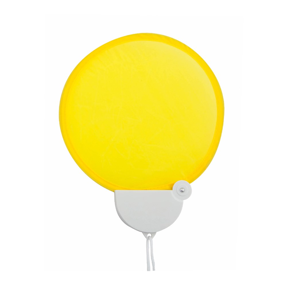 Fächer im Pai-Pai-Stil aus Polyester in verschiedenen kräftigen Farben. Mit Lanyard. Zusammengeklappt von kleiner Größe.