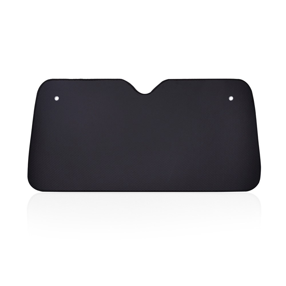 Sonnenschutz aus Aluminum in einer Vielzahl von kräftigen Metallic-Farben. Mit den Maßen 130 x 60 cm, Metallösen zur Verstärkung, sowie zwei Saugnäpfen für die Befestigung an der Windschutzscheibe. Präsentiert in ungefaltetem Zustand für einfaches Bedrucken.