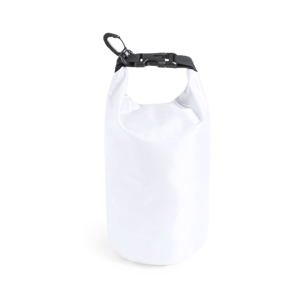 Wasserdichte Tasche aus widerstandsfähigem Ripstop-Material mit wasserundurchlässigem Sicherheitsverschluss. Mit Tragegriff mit Klickverschluss und verstellbarem Schultergurt sowie Befestigungskarabiner.