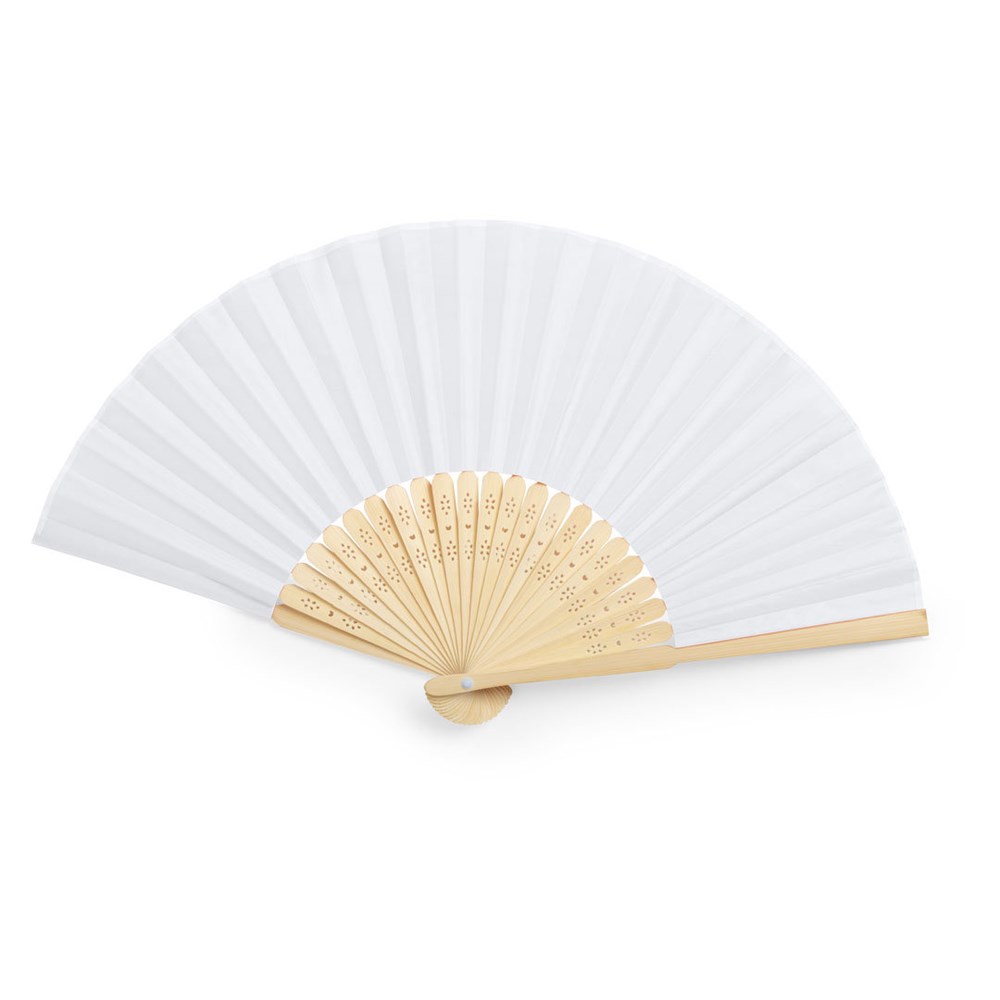Fächer mit eingestampftem Muster aus Bambus- und Polyestergewebe. Erhältlich in einer breiten Palette von auffälligen Farben.