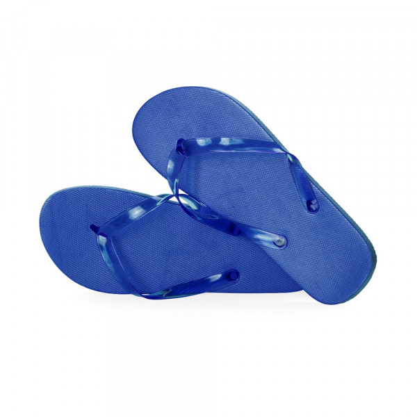 Flip Flops mit Sohle aus resistentem EVA und farblich passenden PVC-Riemen in verschiedenen lebendigen Farben. Erhältlich in den Größen 36-38 und 42-44.