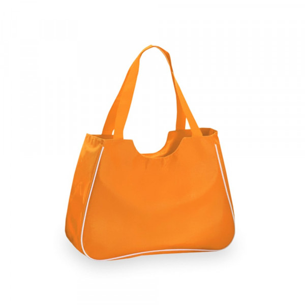 Originelle Strandtasche aus resistentem 600D Polyester in lebendigen Farben. Mit farblich passendem Täschchen im Inneren, Paspel in Weiß, Reißverschluss und langen Henkeln aus Nylon zum Tragen über der Schulter.