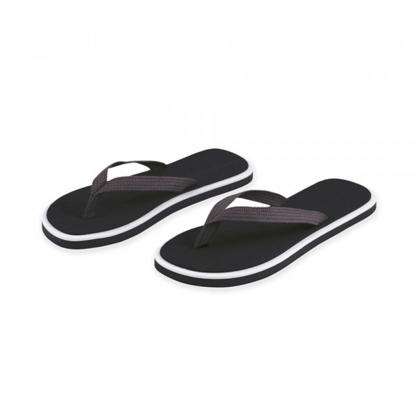 Flip Flops mit dicker Sohle aus robustem EVA in zweifarbiger Ausführung mit farblich passenden Nylonriemen in verschiedenen lebendigen Farben. Erhältlich in den Größen 36-38 und 42-44.