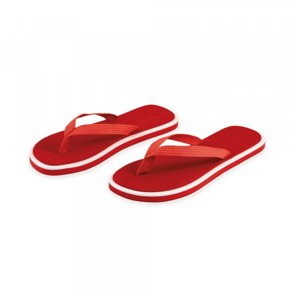 Flip Flops mit dicker Sohle aus robustem EVA in zweifarbiger Ausführung mit farblich passenden Nylonriemen in verschiedenen lebendigen Farben. Erhältlich in den Größen 36-38 und 42-44.