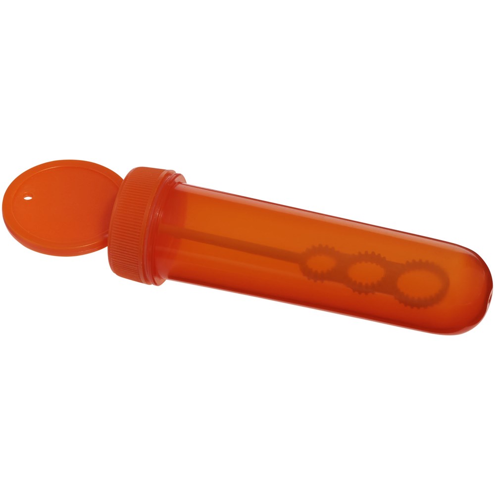 Seifenblasen Röhrchen mit abnehmbarer Kappe und Stab. Inkl. 30 ml Flüssigkeit.