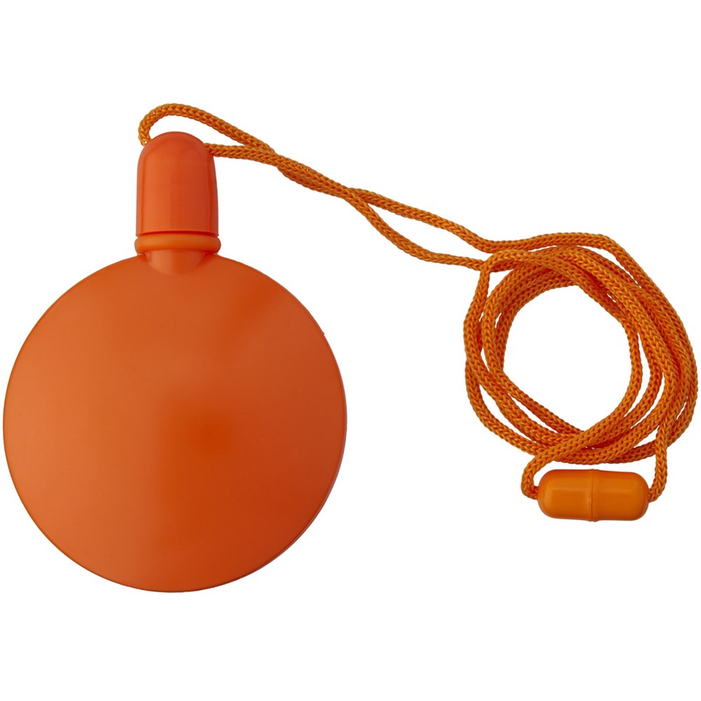 Seifenblasenspender mit abnehmbarer Kappe, Stab und Umhängeband mit Sicherheitsverschluss. Inkl. 40 ml Flüssigkeit.