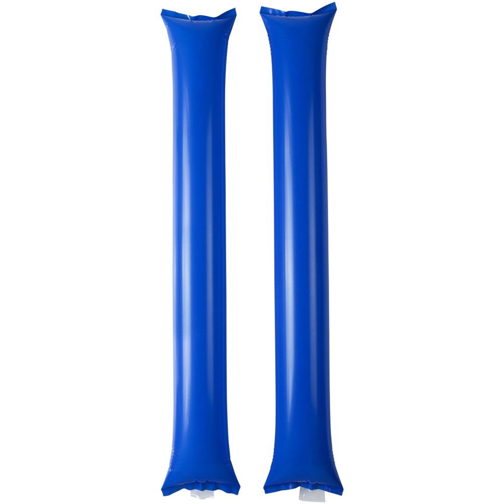 Zwei aufblasbare Klatschstangen. Ideales, wiederverwendbares Produkt zur Unterstützung Ihres Teams. Jede Stange hat eine Größe von 60 x 10 cm mit einem großen Werbeanbringungsbereich. Zur Befüllung mit Luft den mitgelieferten kleinen Strohhalm in die Öffnung der Klatschstange einführen.