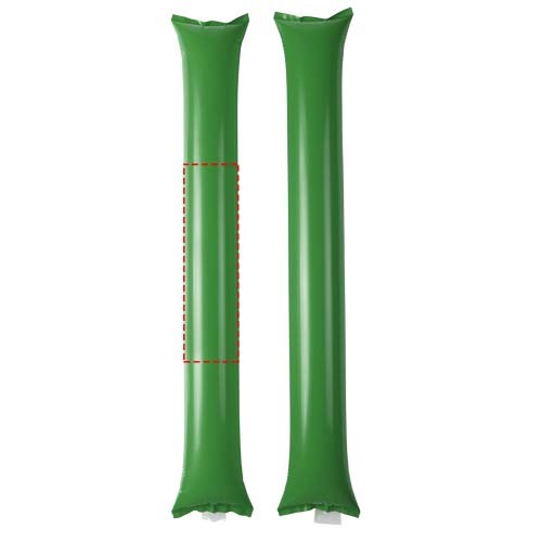 Zwei aufblasbare Klatschstangen. Ideales, wiederverwendbares Produkt zur Unterstützung Ihres Teams. Jede Stange hat eine Größe von 60 x 10 cm mit einem großen Werbeanbringungsbereich. Zur Befüllung mit Luft den mitgelieferten kleinen Strohhalm in die Öffnung der Klatschstange einführen.