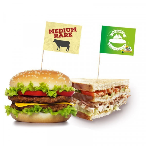 Hamburgerpicker-Sandwichpicker, digitalem print, Standard hygienisch verpackt. Kleinauflagen mehr