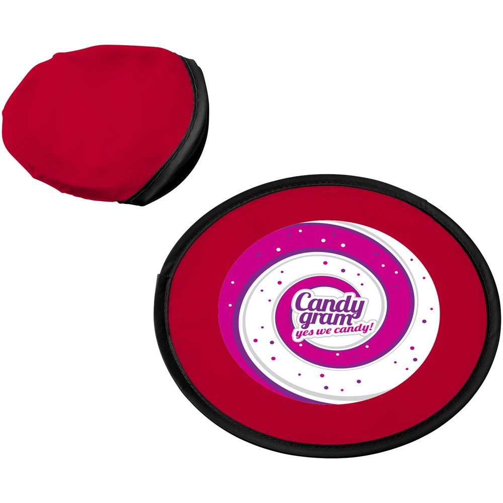 Zusammenfaltbare Wurfscheibe mit passendem 9 x 8 cm großem Aufbewahrungsbeutel. EN71 konform.