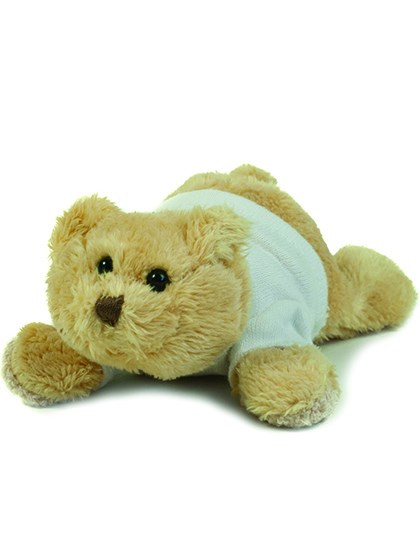 Hellbrauner, kleiner Bär mit vier Magneten an den Pfoten | Entfernbares T-Shirt | Entspricht den europäischen Sicherheitsvorschriften nach EN71 für Spielzeuge | Trägt ein weißes T-Shirt | Polyester-Plüsch