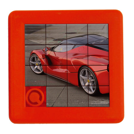 Schiebespiel quadratisch mit Digitaldruck. 75 x 75 x 5 mm, Modell aus Kunststoff.