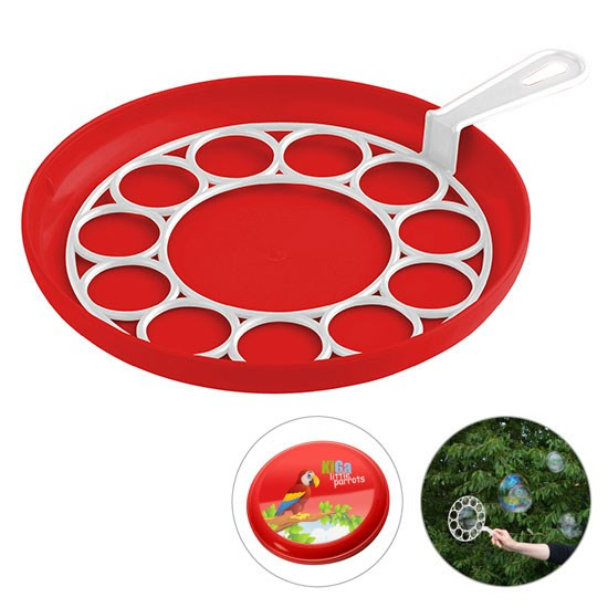 für Riesenblasen, 3-teilig: 1 Blasenring, 1 Flugscheibe, 1 Flasche mit ca. 240 ml Lauge und Geduldspiel im Deckel; Farbkombinationen möglich. Nicht geeignet für Kinder unter 3 Jahren!