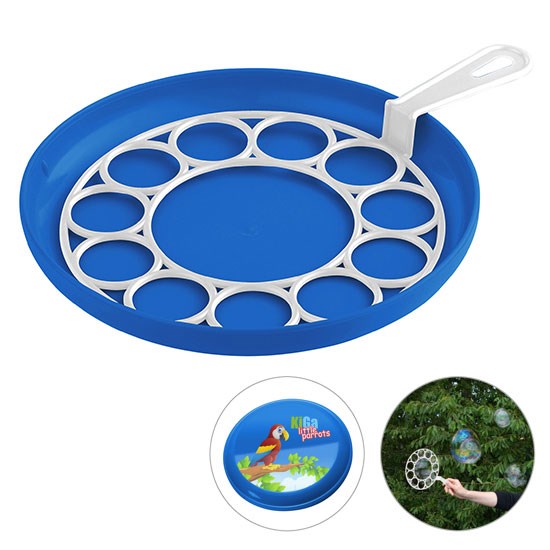 für Riesenblasen, 3-teilig: 1 Blasenring, 1 Flugscheibe, 1 Flasche mit ca. 240 ml Lauge und Geduldspiel im Deckel; Farbkombinationen möglich. Nicht geeignet für Kinder unter 3 Jahren!