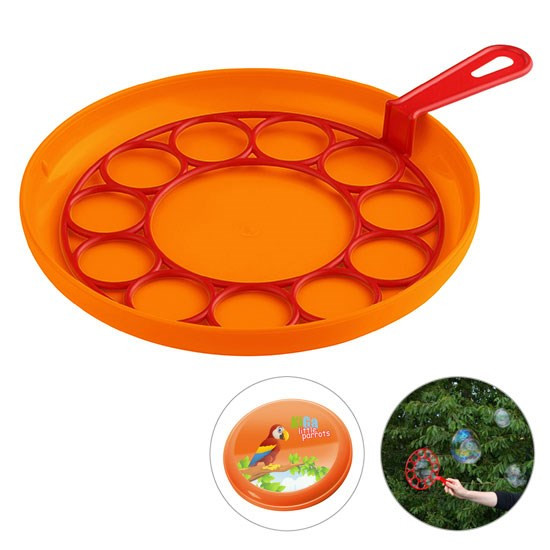 für Riesenblasen, 3-teilig: 1 Blasenring, 1 Flugscheibe, 1 Flasche mit ca. 240 ml Lauge und Geduldspiel im Deckel; Farbkombinationen möglich. Nicht geeignet für Kinder unter 3 Jahren!