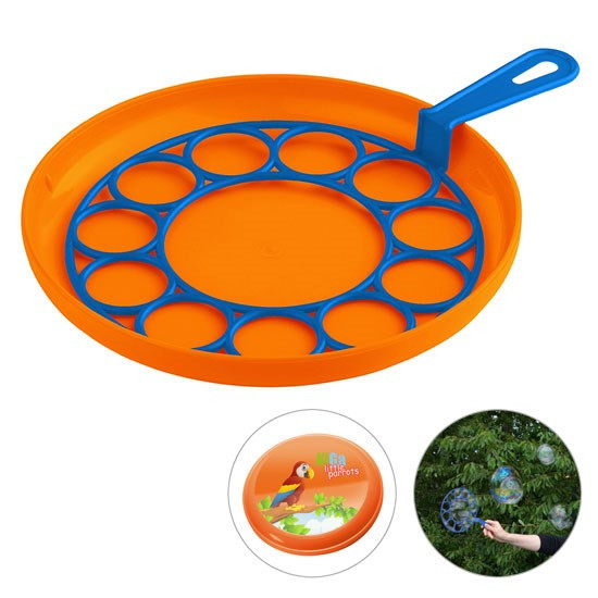 für Riesenblasen, 3-teilig: 1 Blasenring, 1 Flugscheibe, 1 Flasche mit ca. 240 ml Lauge und Geduldspiel im Deckel; Farbkombinationen möglich. Nicht geeignet für Kinder unter 3 Jahren!