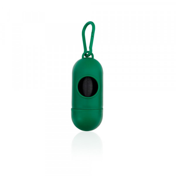 Beutelspender mit robustem Körper in kräftigen Farben erhältlich. Mit farblich passender LED-Taschenlampe und Befestigungskarabiner aus Metall. Mit 15 Beuteln sowie Knopfzellenbatterien inklusive.