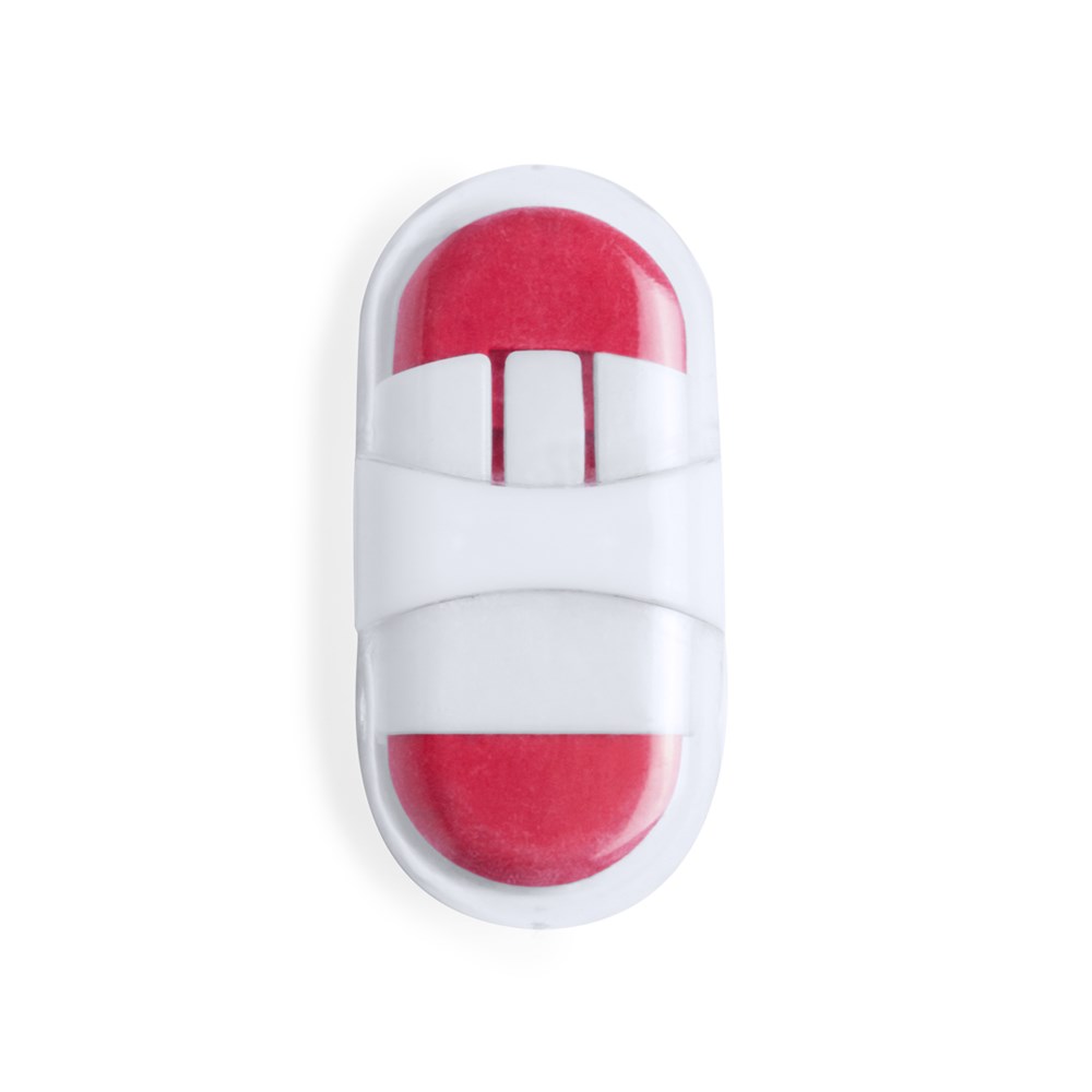 Originelles Radiergummi in fröhlichen Farben mit weißem Sicherheitsgehäuse und transparenter Kappe.
