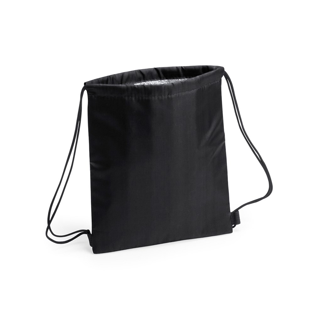 Rucksack mit Kordelzug und Kühlschrankfunktion für Kinder aus angenehm weichem 210T Polyester in vielen lebendigen Farben. Mit Zugbändern in Schwarz, Außentasche und verstärkten Ecken. Isotherm-Innenraum in Aluminium-Ausführung.