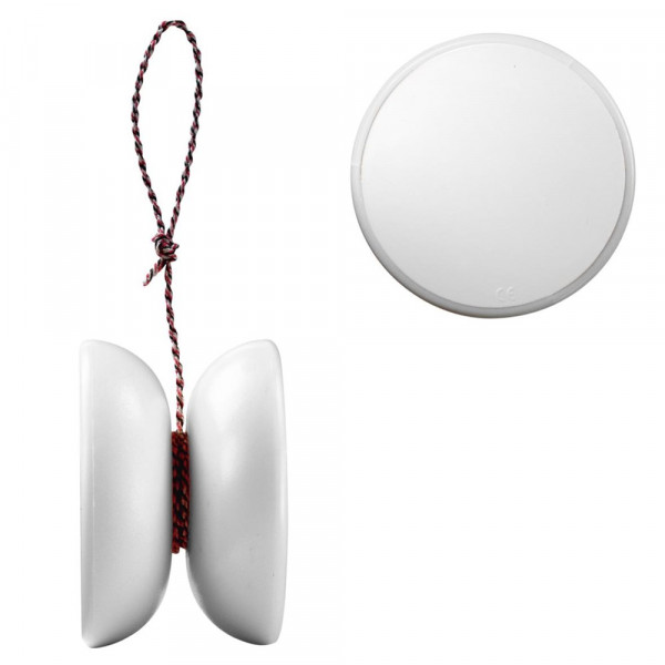 Das Jo-Jo für Fortgeschrittene. Mit Trickspiel-Eigenschaften und bedruckbaren Uni-Farbscheiben an den Seiten. Der Baumwoll-Cordzwirn ist 90 cm.