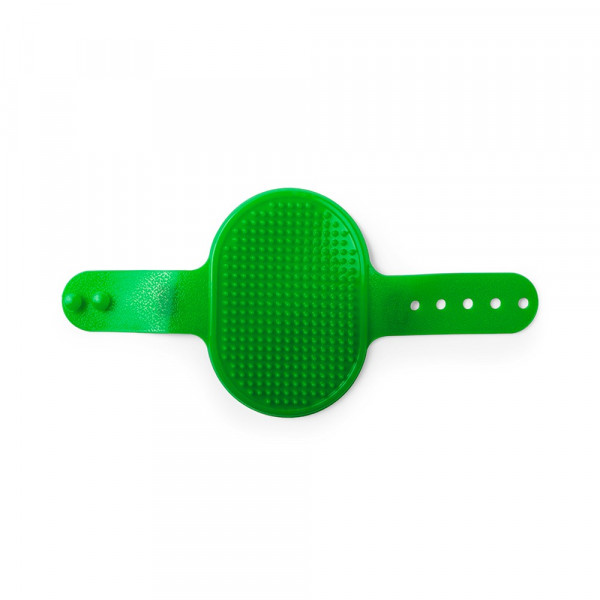 Weiche Haustierbürste aus PVC in lebendigen Farben. Mit verstellbarer Handschlaufe.
