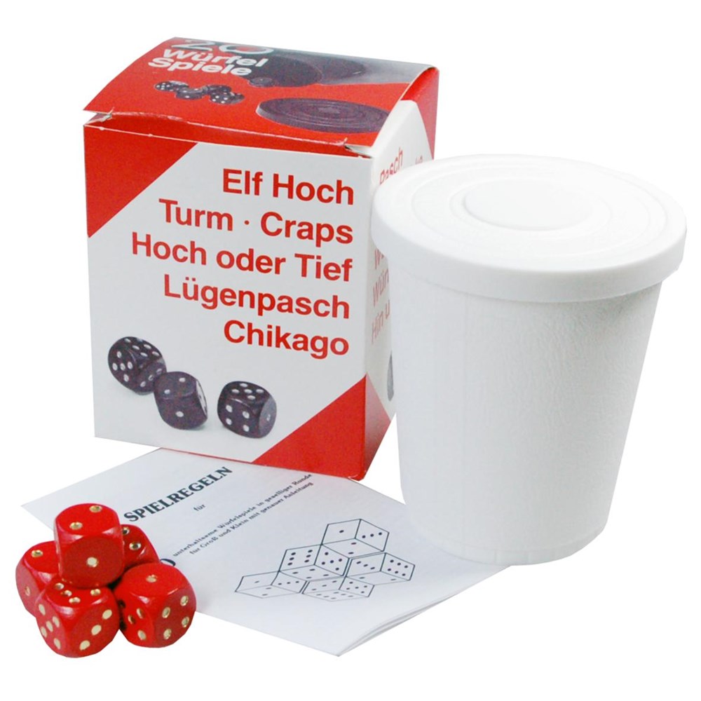 20 spannende Würfel-Spiele möglich. 5 Holzwürfel im verschließbaren Kunststoffbecher mit Spielanleitung.