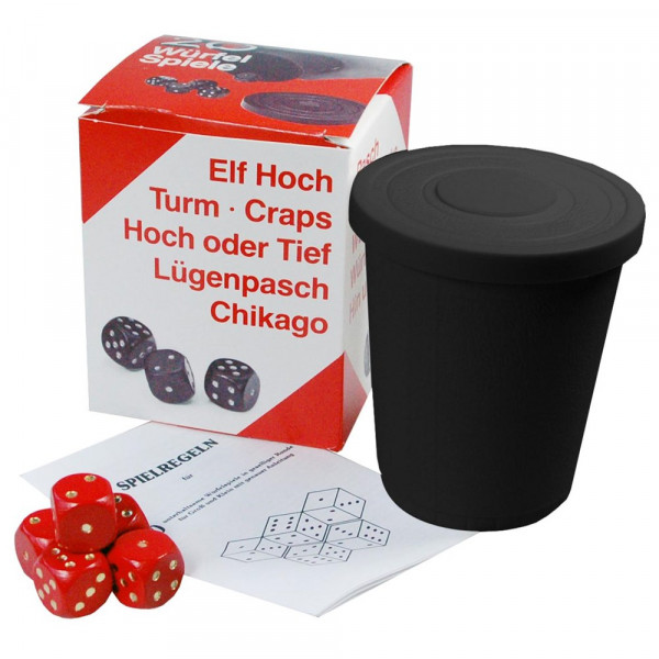 20 spannende Würfel-Spiele möglich. 5 Holzwürfel im verschließbaren Kunststoffbecher mit Spielanleitung.