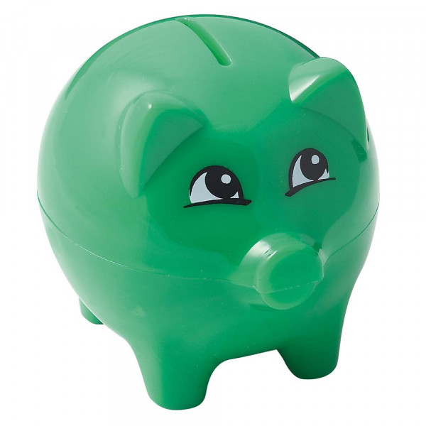 Süßes Kunststoff-Schweinchen mit aufgedruckten Augen, Einwurfschlitz, verschließbarem Deckel und... mehr