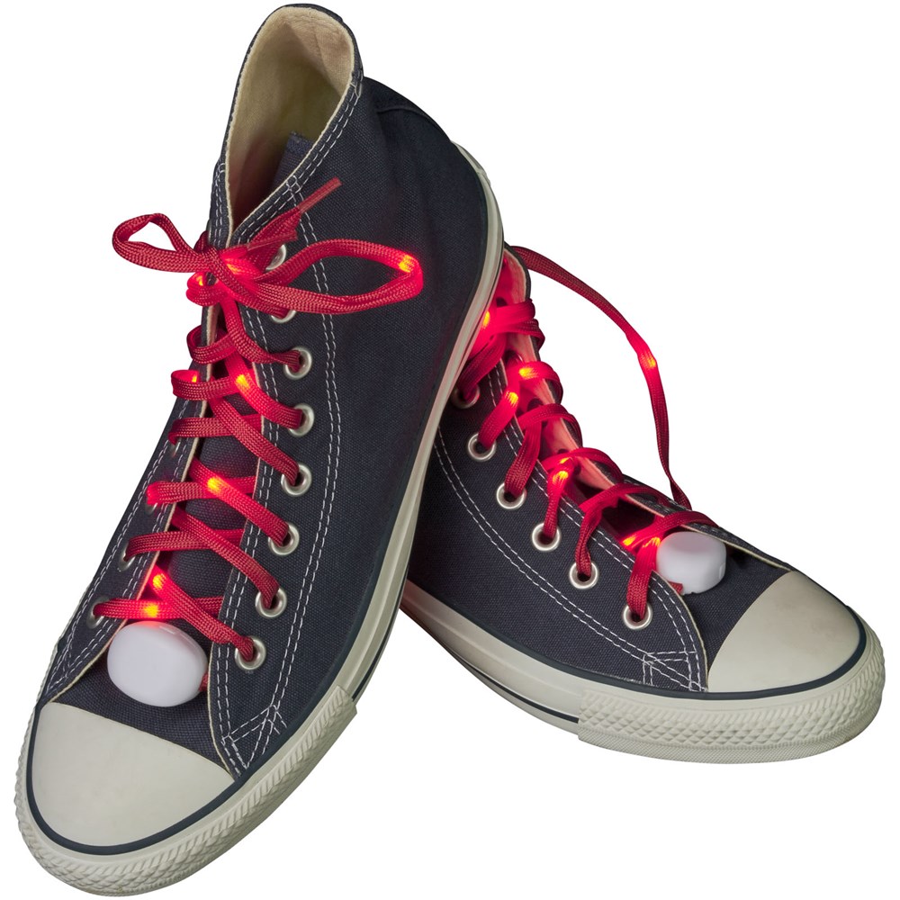 Schnürsenkel, die Spaß, Sicherheit und Funktionalität verbinden. Geeignet für alle Arten von Schuhen, Altersgruppen und Aktivitäten. Jeder Schnürsenkel ist 120 cm lang und verfügt über 10 LEDs. Das Paneel in der Mitte bietet die Möglichkeit, die Lichter ein- und auszuschalten oder blinken zu lassen. Erhältlich in vielen verschiedenen Farben, mit einer großen Dekorationsfläche in der Mitte.