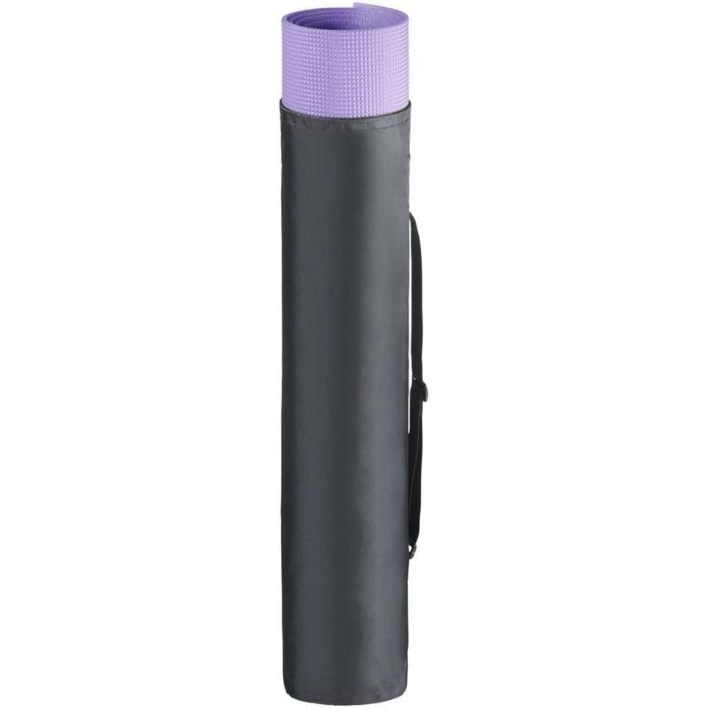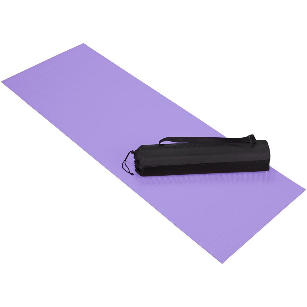 Bequeme Yoga- und Fitnessmatte mit Diamantmuster und rutschfester Oberfläche. Inklusive Polyester Tragetasche mit Kordelzug und verstellbaren Schulterriemen. Mattengröße: 60x170x0,5cm.
