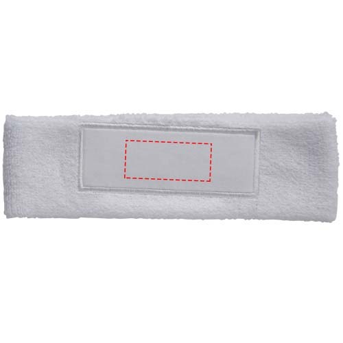 Weiches und saugfähiges elastisches Baumwoll Stirnband mit rechteckigem 90x30mm Aufnäher für Werbeanbringung.