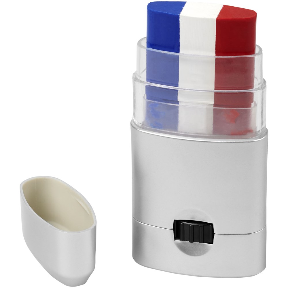 Leicht zu reinigende Körperfarbe in einer Vielzahl von Farbkombinationen, welche die Länder Frankreich, Deutschland, Italien, Niederlande, Belgien, Portugal, Spanien, Österreich, Dänemark, Schweiz, Schweden und Polen repräsentieren. Kann auch auf das Gesicht aufgetragen und mit einem Make-up-Reiniger oder mit Wasser und Seife entfernt werden. Hergestellt unter GMP-Konformitätsanforderungen (Good Manufacturing Practices), erfüllt die EU-Verordnungen über kosmetische Mittel (Verordnung (EC) Nr. 1223/2009). CPNP-Registrierungsnummer 3260279.