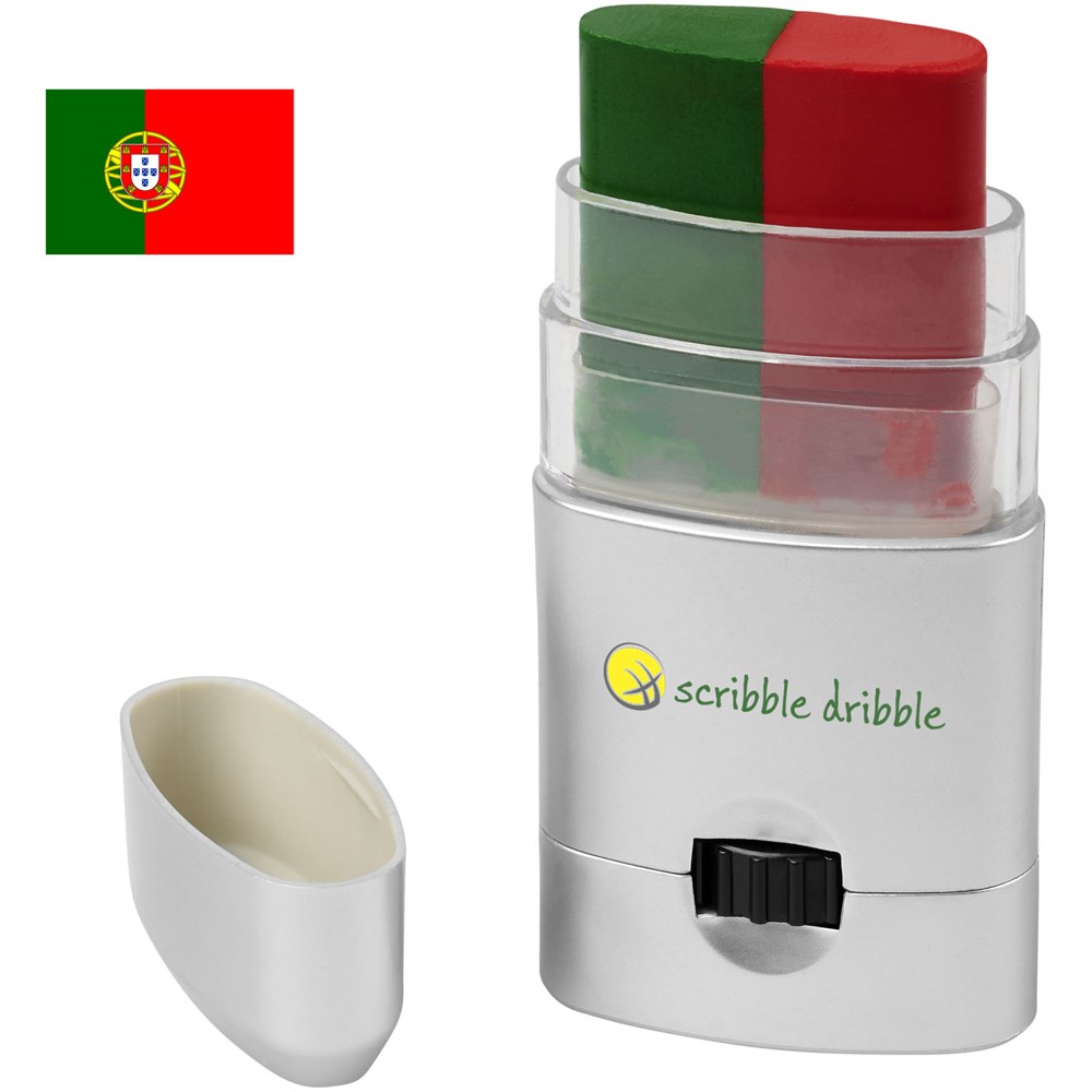 Leicht zu reinigende Körperfarbe in einer Vielzahl von Farbkombinationen, welche die Länder Frankreich, Deutschland, Italien, Niederlande, Belgien, Portugal, Spanien, Österreich, Dänemark, Schweiz, Schweden und Polen repräsentieren. Kann auch auf das Gesicht aufgetragen und mit einem Make-up-Reiniger oder mit Wasser und Seife entfernt werden. Hergestellt unter GMP-Konformitätsanforderungen (Good Manufacturing Practices), erfüllt die EU-Verordnungen über kosmetische Mittel (Verordnung (EC) Nr. 1223/2009). CPNP-Registrierungsnummer 3260279.