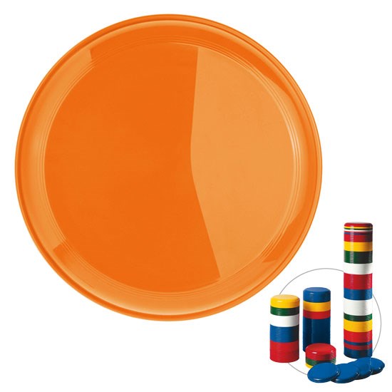 das Freizeit-Sportgerät mit besten Flugeigenschaften. Die Scheibe ist stapelbar und kann somit platzsparend für Messen und Werbeaktionen eingesetzt werden.