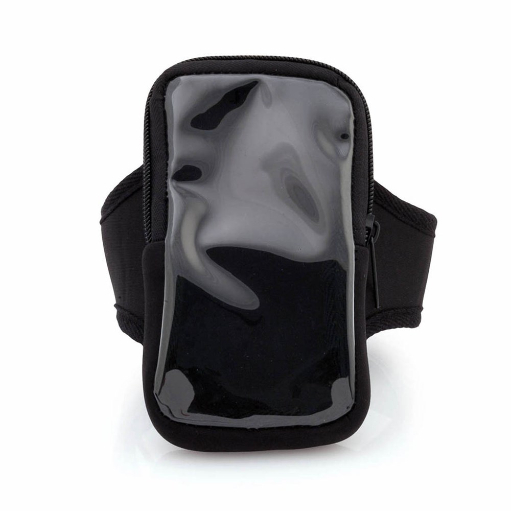 Bequemes Sportarmband für Smartphones aus weichem Soft-Shell. Mit verstellbarem Klettverschluss und PVC-Fenster mit Touch-Funktion.