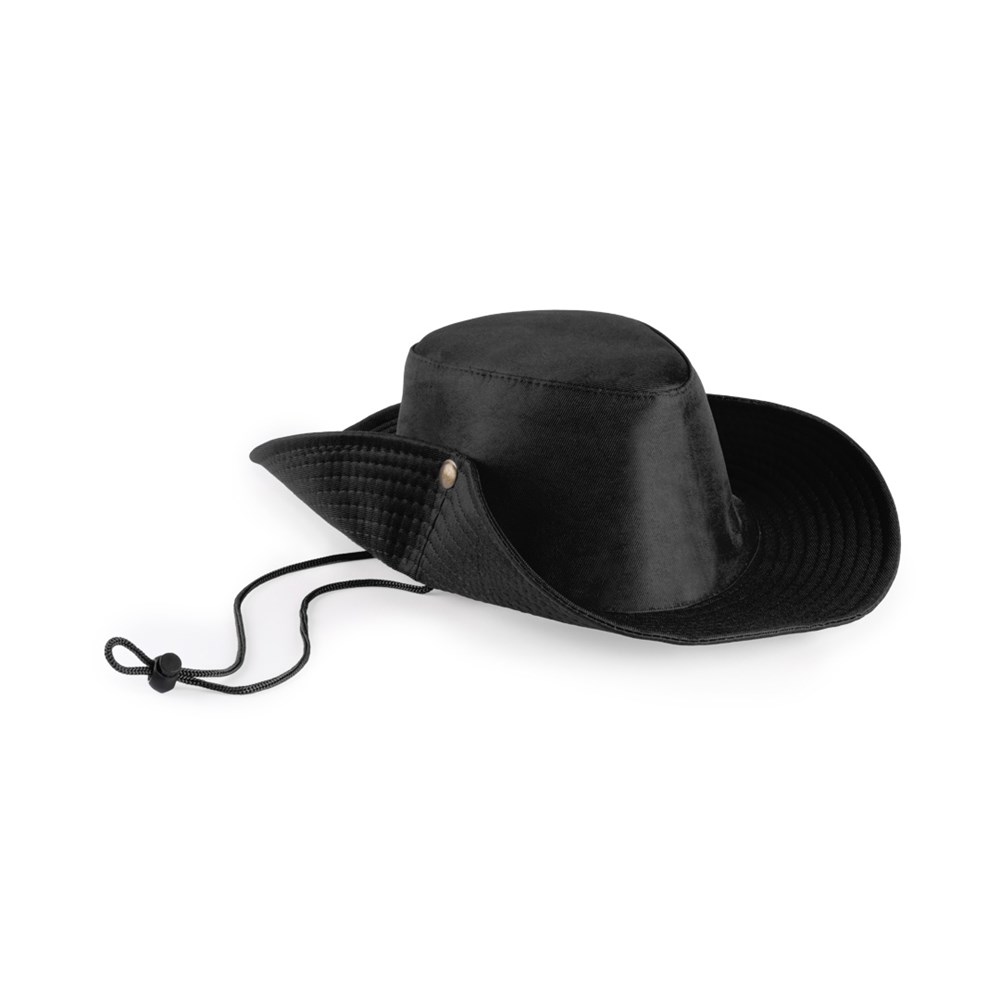 Hut aus 100 % Polyester in glänzender Ausführung und lebendigen Farben. Mit komfortabler Innenseite und verstellbarer Hutkrempe mit Metall-Druckknopf sowie farblich passendem Band.