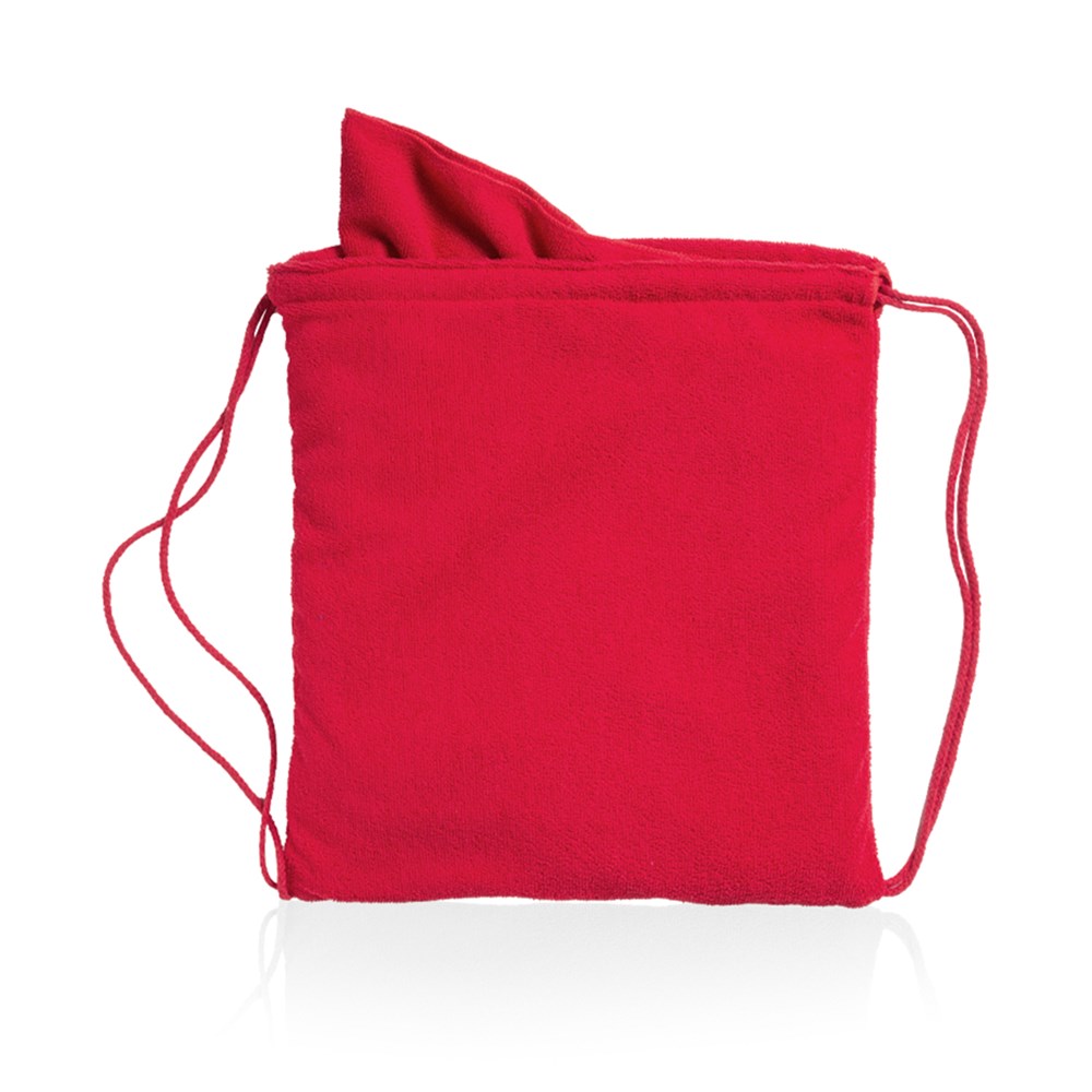 Handtuch mit den Maßen 150 x 70cm und integriertem Rucksack. Hergestellt aus saugfähiger, weicher Mikrofaser (160 g/m2) in verschiedenen Farben. Durch spezielle Faltung wird aus dem Handtuch ein Rucksack mit Kordelzug, so dass es bequem transportiert werden kann.