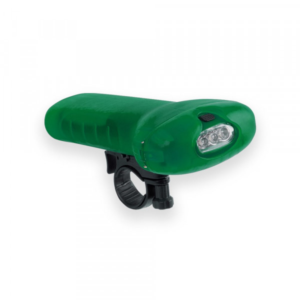 Multifunktions-Fahrradlicht für den Lenker mit 3 LEDs und 2 Lichteinstellungen. Gehäuse in kräftigen Farben mit geschmeidiger Oberfläche und robustem Befestigungsring. Batteriebetrieben - 3 x AAA nicht inklusive. Präsentiert in einer individuellen Box in Silber.