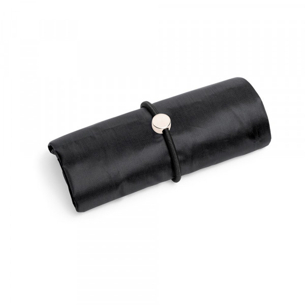 Faltbare Tasche in verschiedenen fröhlichen Farben aus weichem 190T Polyester. Mit Steppnähten und Gummiband zum Fixieren im gefalteten Zustand.