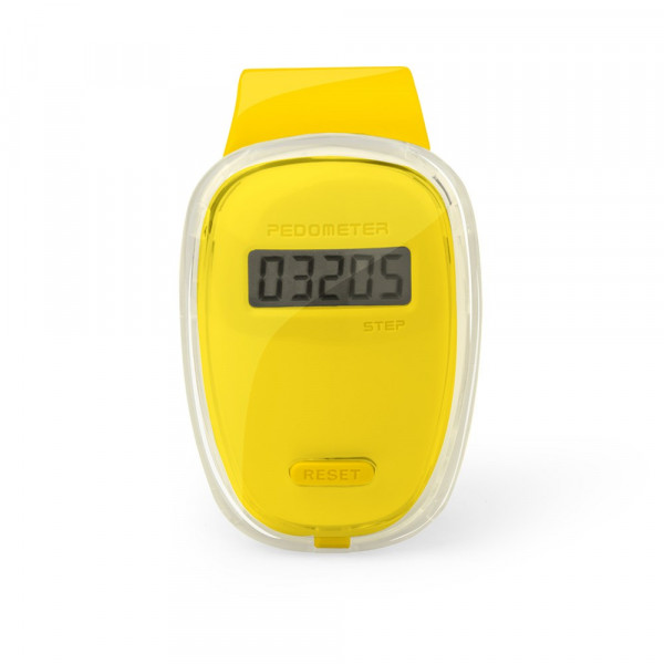 Praktischer Schrittzähler mit originellem Design und transparentem Gehäuse mit Kontrastelementen in kräftigen Farben und Befestigungsclip. Knopfzelle mit Schutzfolie inklusive. Präsentiert in einer individuellen Box.