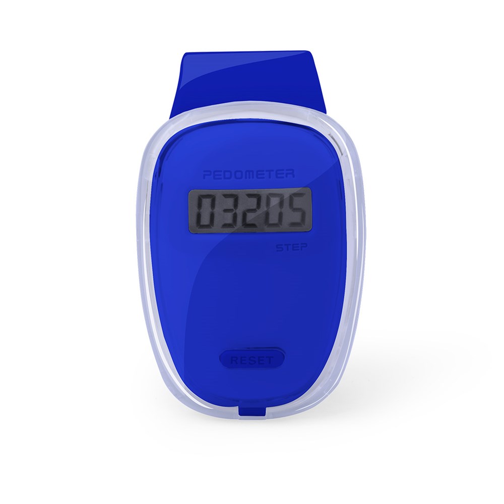 Praktischer Schrittzähler mit originellem Design und transparentem Gehäuse mit Kontrastelementen in kräftigen Farben und Befestigungsclip. Knopfzelle mit Schutzfolie inklusive. Präsentiert in einer individuellen Box.