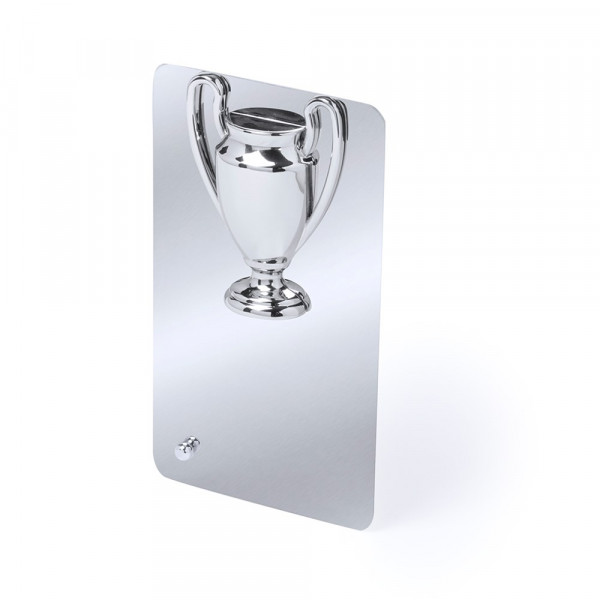 Edelstahlplatte in glänzender Ausführung in Silber mit einer Vielzahl von Sport-Designs in Relief. Präsentiert in einem schwarzen Schutzcase.