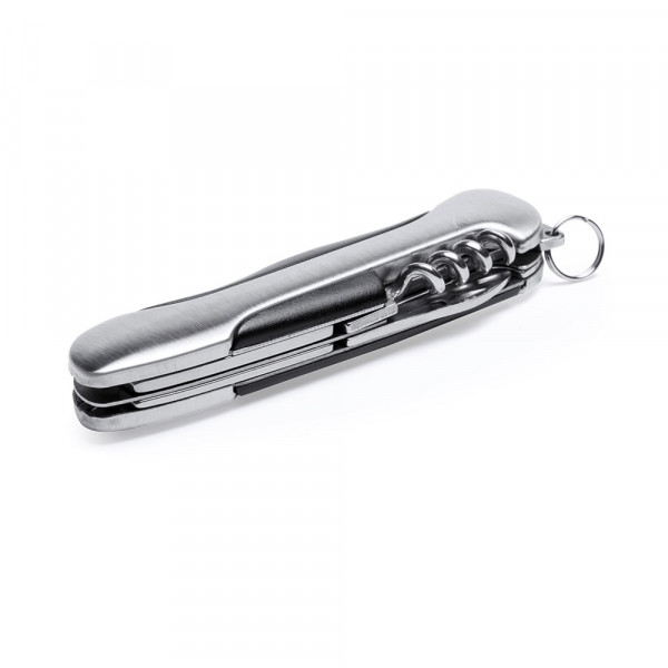 Vielseitig verwendbares Taschenmesser von Orizons aus Edelstahl mit 8 Funktionen und rutschfestem Griff. Mit Messer, Dosenöffner, Flaschenöffner, Schraubendreher, Schlagdorn mit Feile und Korkenzieher. Mit Schlüsselring. Präsentiert in einer attraktiven Designbox mit dem Markenlogo.