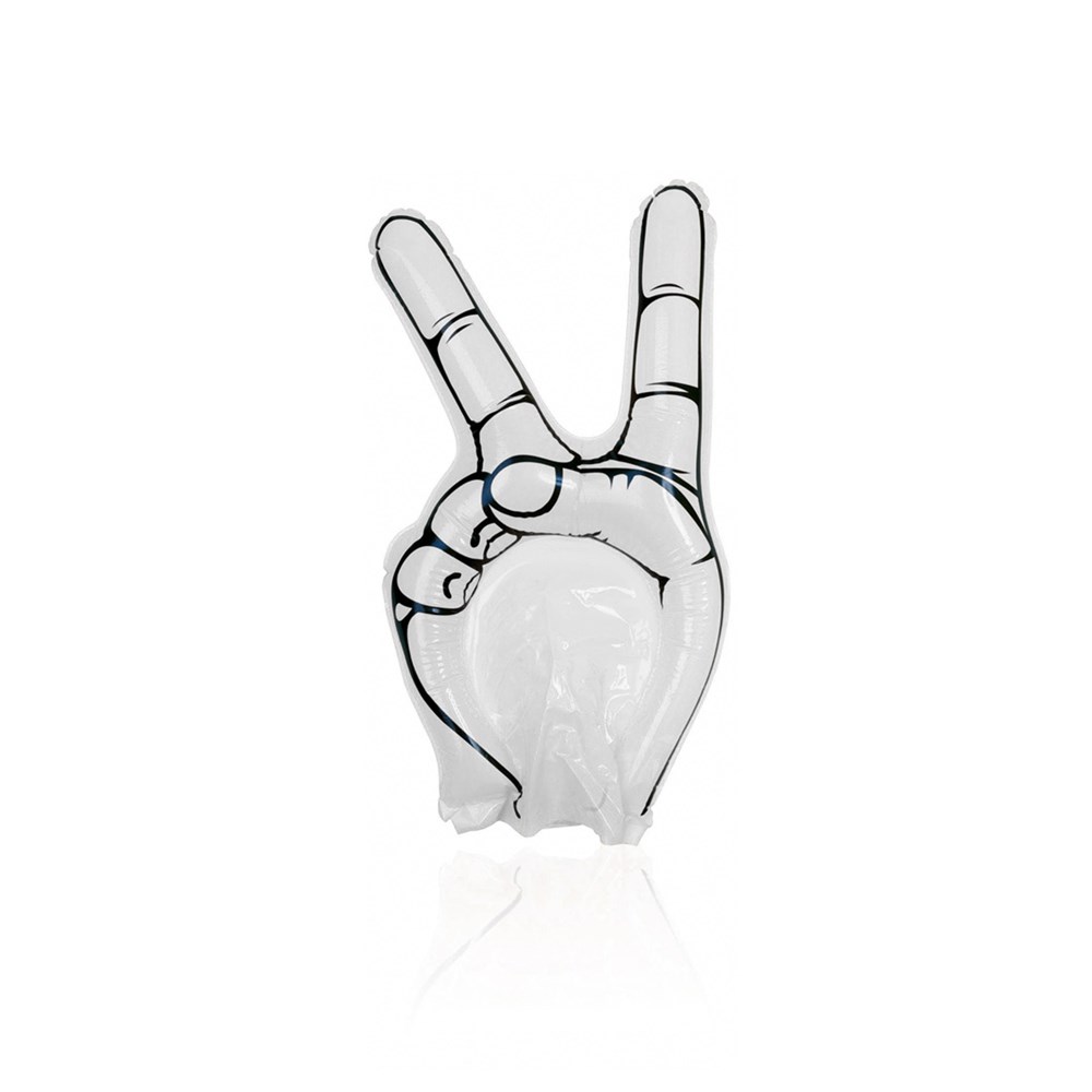 Tolle Hand mit Victory-Zeichen aus robustem LDPE-Material in leuchtenden Farben. Wiederverwendbar und mit Ventil.