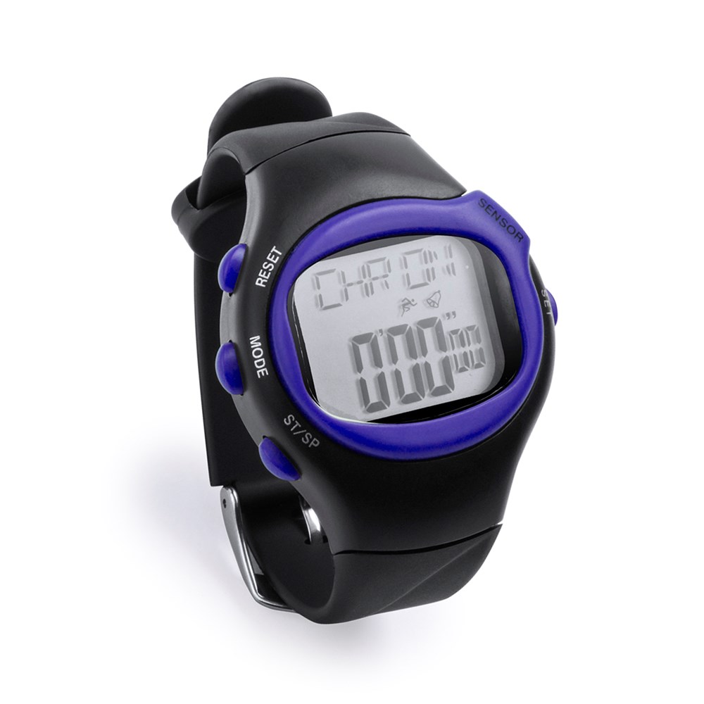 Coole Sportuhr mit digitalem Herzfrequenzmesser und LCD-Display sowie komfortablem, verstellbarem Armband. Spritzwassergeschützt. Perfekt geeignet für alle Arten von Sport und Freizeitaktivitäten. Datums- und Uhrzeitfunktion, Pulsuhr, Stoppuhr und Schrittzähler. Knopfzelle inklusive. Präsentiert in einer individuellen Box.