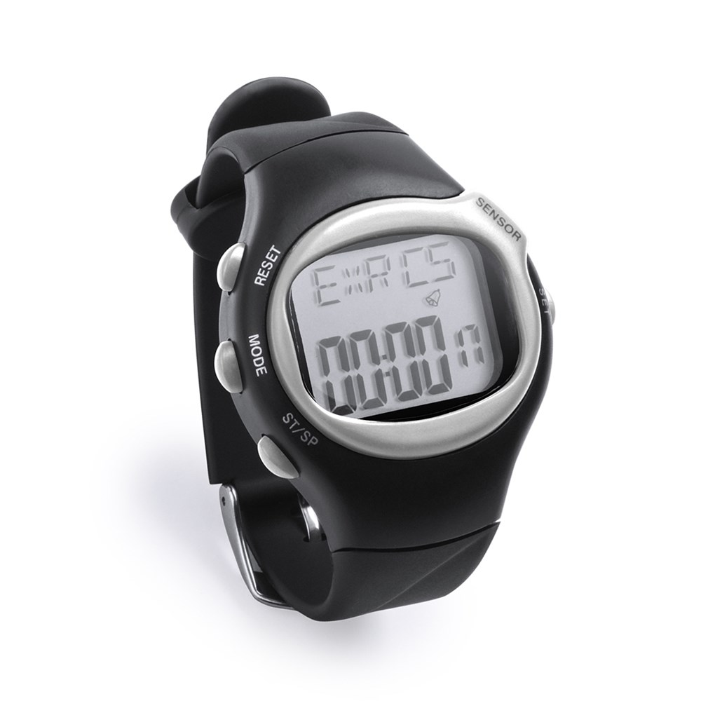 Coole Sportuhr mit digitalem Herzfrequenzmesser und LCD-Display sowie komfortablem, verstellbarem Armband. Spritzwassergeschützt. Perfekt geeignet für alle Arten von Sport und Freizeitaktivitäten. Datums- und Uhrzeitfunktion, Pulsuhr, Stoppuhr und Schrittzähler. Knopfzelle inklusive. Präsentiert in einer individuellen Box.